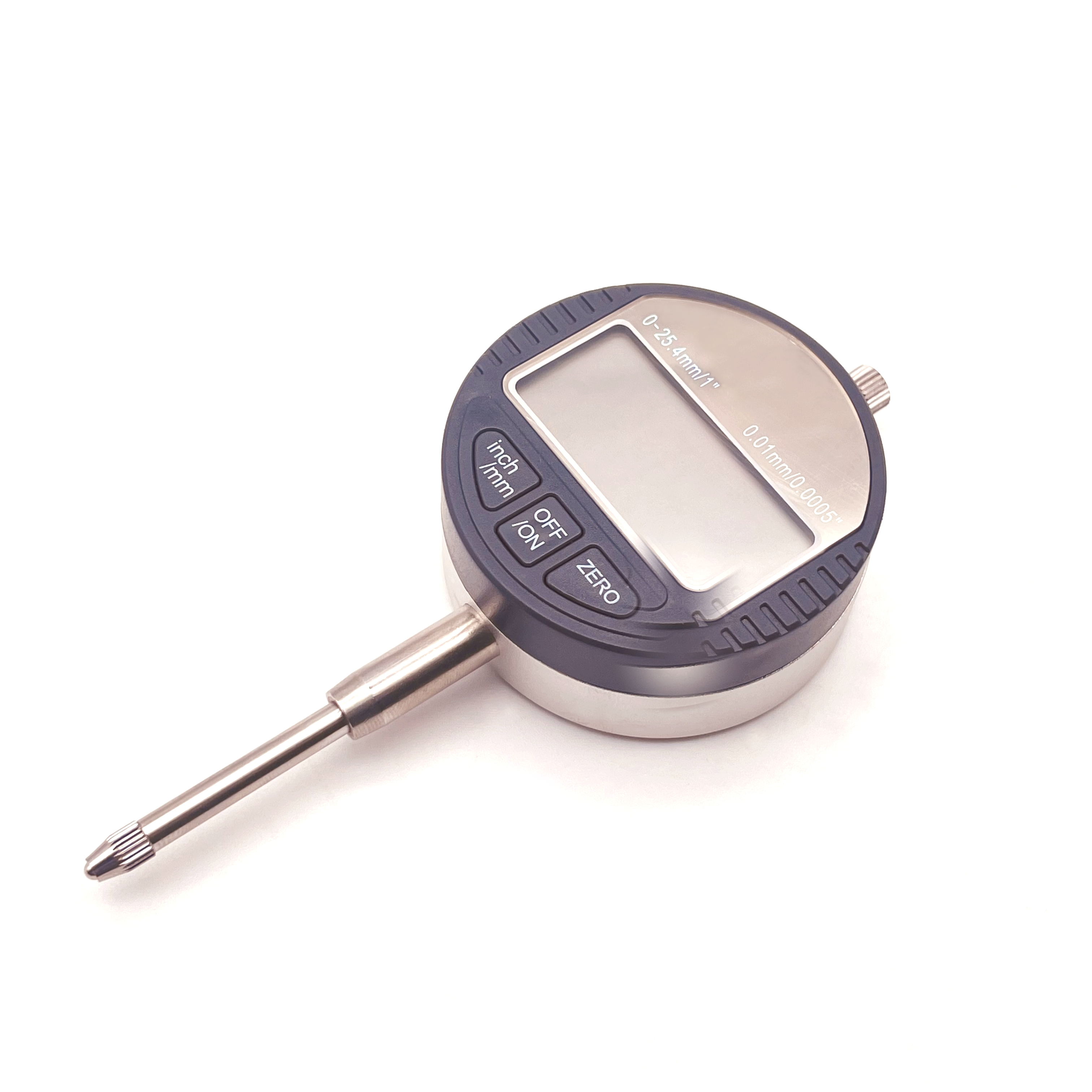 Используется для измерения отклонений линейных размеров, а также для определения величины отклонения от заданной геометрической формы. Индикатор оснащен дисплеем, который отображает результаты измерений, а так же кнопочным блоком, позволяющим легко менять систему измерения с мм на дюймы и сбросить прибор на 0.